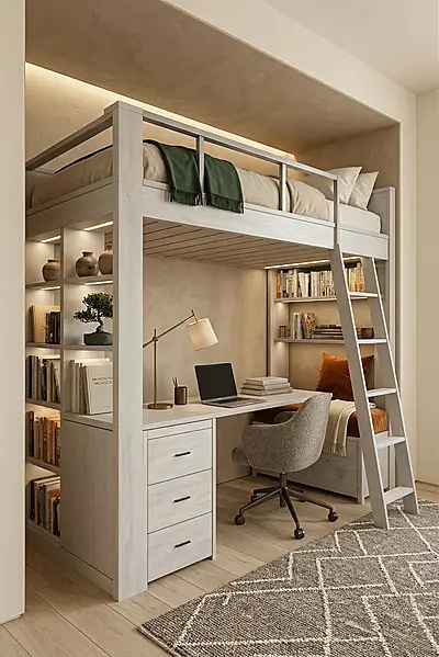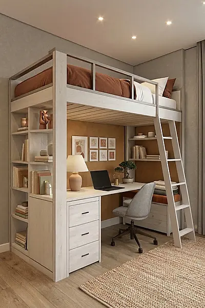 Кровать-чердак Рыцарь с встроенный рабочий стол — металлическая конструкция в стиле лофт от производителя TOPLOFT. Металл толщиной 2 мм, сварные швы без болтов, покрытие порошковой краской, 200+ оттенков на выбор. Освобождает до 4 м² жилой площади, нагрузка на верхний ярус до 150 кг. Изготавливаем под ваши размеры, доставим в любой город России.