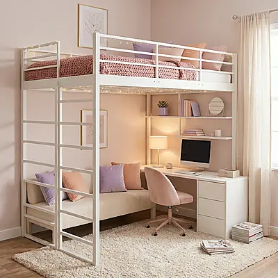 Кровать-чердак Пилот — металлическая конструкция в стиле лофт от производителя TOPLOFT. Профильная труба 40×40 мм, сварной каркас, покрытие порошковой краской, 200+ оттенков на выбор. Освобождает до 4 м² жилой площади, нагрузка на верхний ярус до 150 кг. Изготавливаем под ваши размеры, доставим в любой город России.