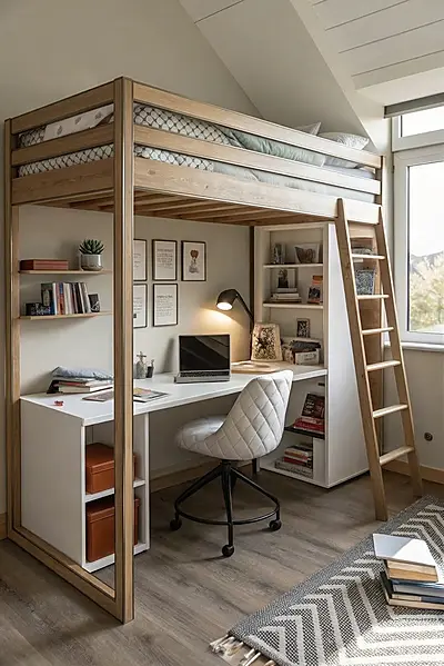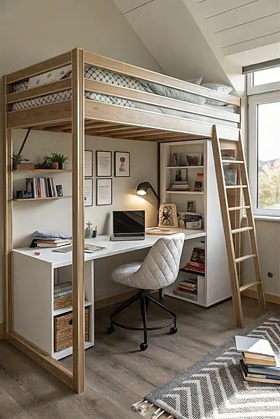 - Рабочая зона внизу — стол для учёбы или работы