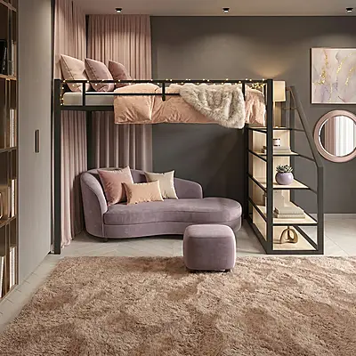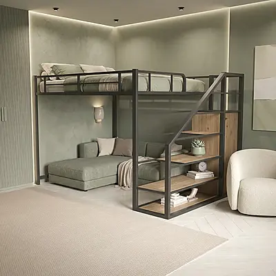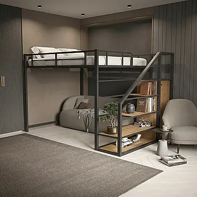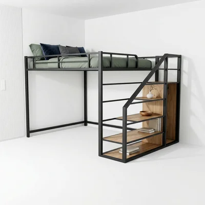 Кровать-чердак Нора — металлическая конструкция в стиле лофт от производителя TOPLOFT. Металлический каркас из профильной трубы, покрытие порошковой краской, 200+ оттенков на выбор. Освобождает до 4 м² жилой площади, нагрузка на верхний ярус до 150 кг. Изготавливаем под ваши размеры, доставим в любой город России.