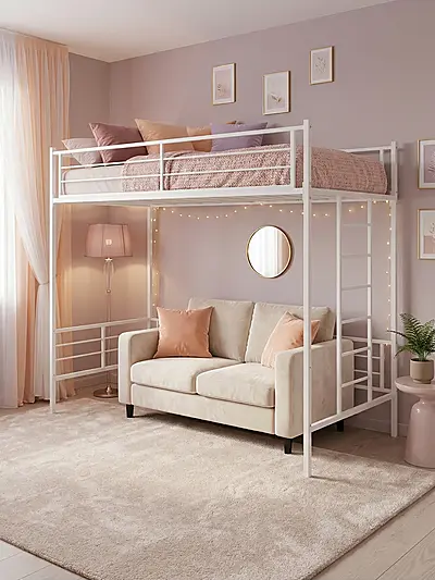Кровать-чердак Контур — металлическая конструкция в стиле лофт от производителя TOPLOFT. Металлический каркас из профильной трубы, порошковая окраска методом электростатики, любой RAL. Освобождает до 4 м² жилой площади, рассчитана на 150 кг — подходит для взрослых. Изготавливаем под ваши размеры, отправляем в любую точку России.