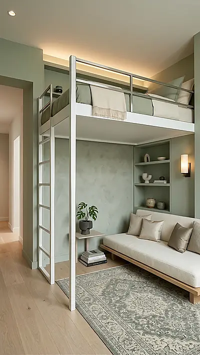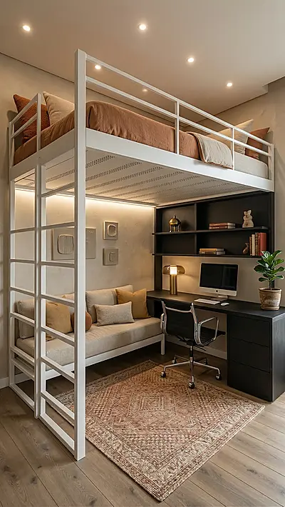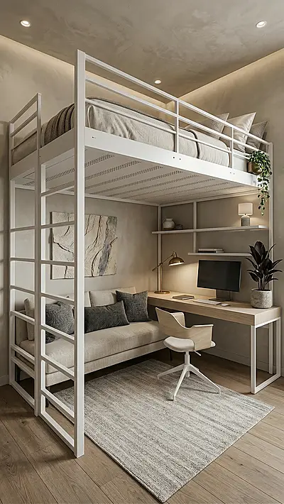 Кровать-чердак Регент с диван внизу — металлическая конструкция в стиле лофт от производителя TOPLOFT. Металлический каркас из профильной трубы, порошковое покрытие — любой цвет RAL. Освобождает до 4 м² жилой площади, верхний ярус выдерживает до 150 кг. Изготавливаем под ваши размеры, доставка транспортными компаниями по РФ.