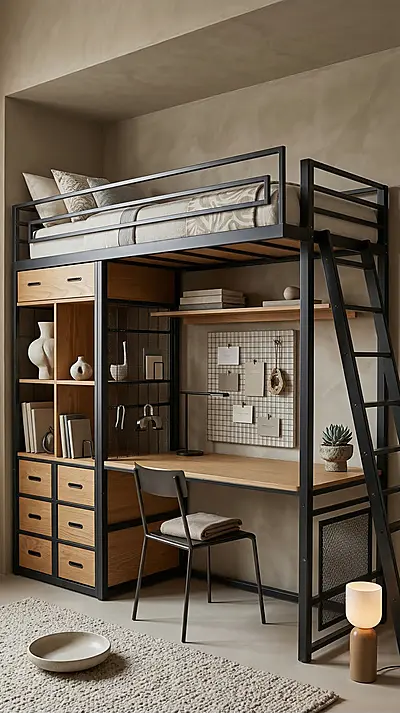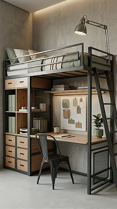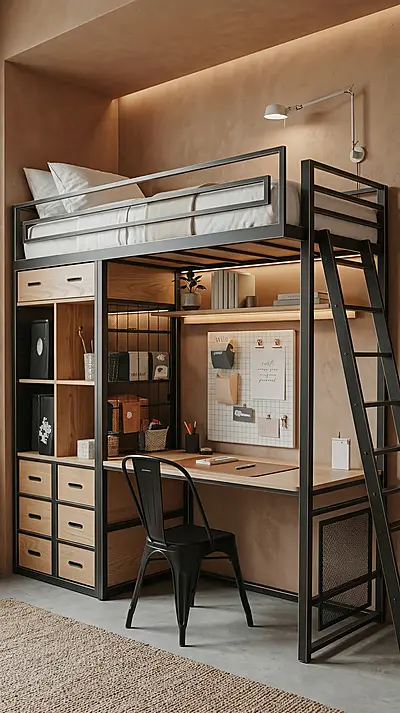 - Рабочая зона внизу — стол для учёбы или работы