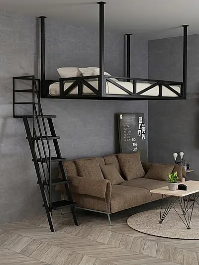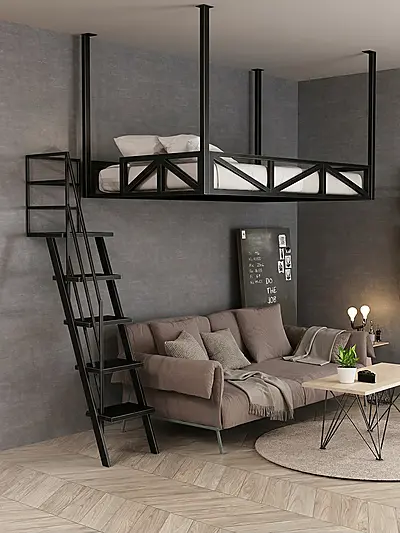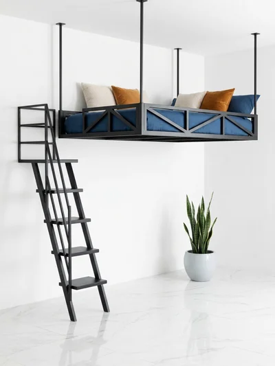 Кровать-чердак Балкон с подвесное крепление — металлическая конструкция в стиле лофт от производителя TOPLOFT. Металлический каркас из профильной трубы, покрытие порошковой краской, 200+ оттенков на выбор. Освобождает до 4 м² жилой площади, нагрузка на верхний ярус до 150 кг. Изготавливаем под ваши размеры, доставим в любой город России.
