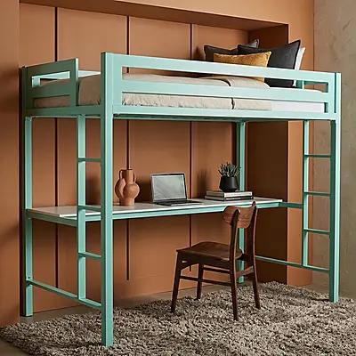 Кровать-чердак Хижина — металлическая конструкция в стиле лофт от производителя TOPLOFT. Сварная рама из профилированной стали, покрытие порошковой краской, 200+ оттенков на выбор. Освобождает до 4 м² жилой площади, нагрузка на верхний ярус до 150 кг. Изготавливаем под ваши размеры, доставим в любой город России.