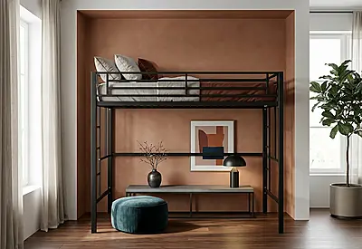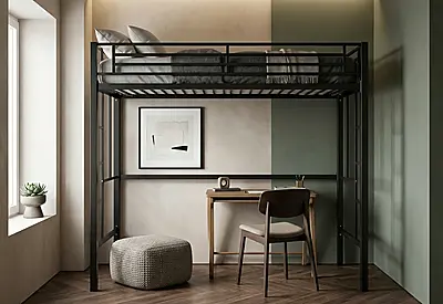 Кровать-чердак Приют — металлическая конструкция в стиле лофт от производителя TOPLOFT. Стальная конструкция из профильной трубы 40×40 мм, порошковая окраска методом электростатики, любой RAL. Освобождает до 4 м² жилой площади, рассчитана на 150 кг — подходит для взрослых. Изготавливаем под ваши размеры, отправляем в любую точку России.