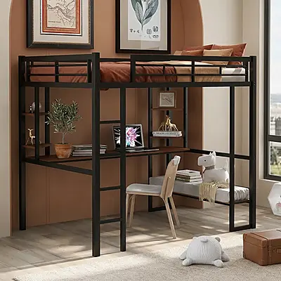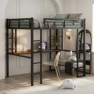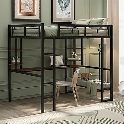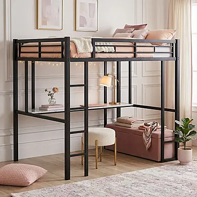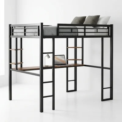 Кровать-чердак Флэт с встроенный рабочий стол — металлическая конструкция в стиле лофт от производителя TOPLOFT. Стальная конструкция из профильной трубы 40×40 мм, порошковое покрытие — любой цвет RAL. Освобождает до 4 м² жилой площади, верхний ярус выдерживает до 150 кг. Изготавливаем под ваши размеры, доставка транспортными компаниями по РФ.