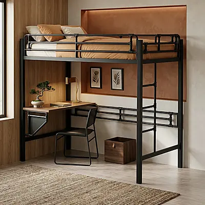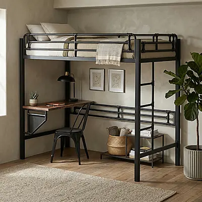 Кровать-чердак Цех-2 — металлическая конструкция в стиле лофт от производителя TOPLOFT. Металл толщиной 2 мм, сварные швы без болтов, порошковая окраска методом электростатики, любой RAL. Освобождает до 4 м² жилой площади, рассчитана на 150 кг — подходит для взрослых. Изготавливаем под ваши размеры, отправляем в любую точку России.
