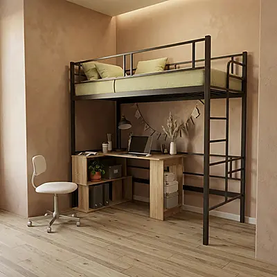 Кровать-чердак Норд — металлическая конструкция в стиле лофт от производителя TOPLOFT. Металлический каркас из профильной трубы, покрытие порошковой краской, 200+ оттенков на выбор. Освобождает до 4 м² жилой площади, нагрузка на верхний ярус до 150 кг. Изготавливаем под ваши размеры, доставим в любой город России.