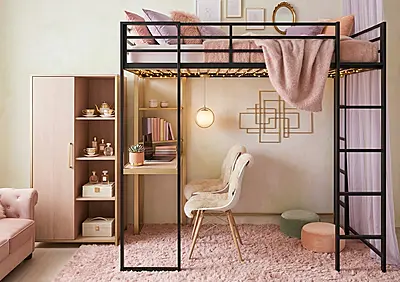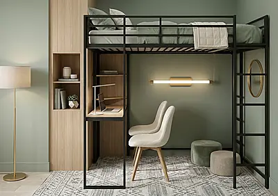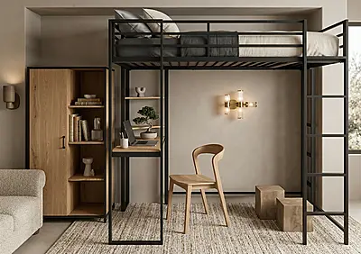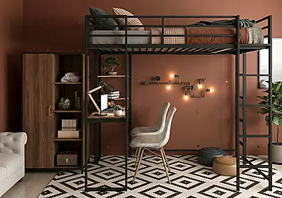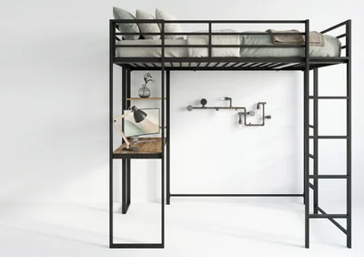 Кровать-чердак Спейс с встроенный рабочий стол — металлическая конструкция в стиле лофт от производителя TOPLOFT. Профильная труба 40×40 мм, сварной каркас, порошковая окраска методом электростатики, любой RAL. Освобождает до 4 м² жилой площади, рассчитана на 150 кг — подходит для взрослых. Изготавливаем под ваши размеры, отправляем в любую точку России.