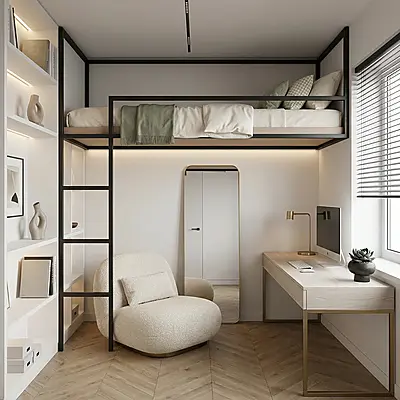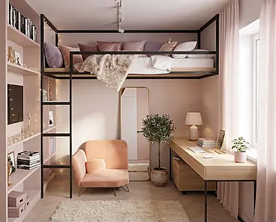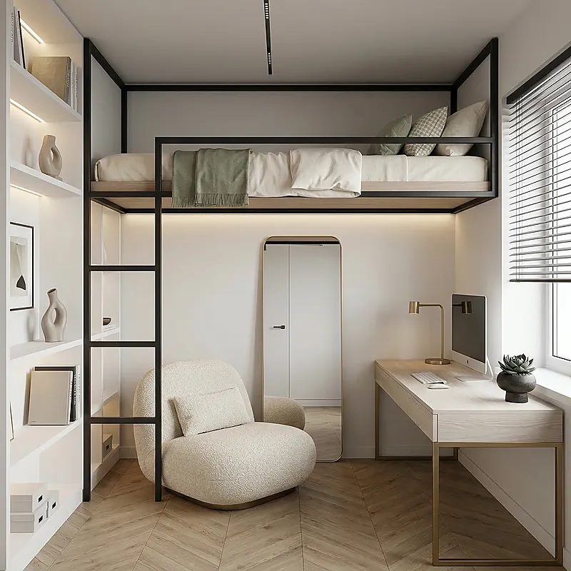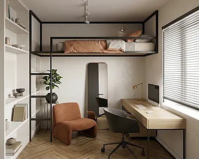 Кровать-чердак Линия — металлическая конструкция в стиле лофт от производителя TOPLOFT. Металл толщиной 2 мм, сварные швы без болтов, порошковая окраска методом электростатики, любой RAL. Освобождает до 4 м² жилой площади, рассчитана на 150 кг — подходит для взрослых. Изготавливаем под ваши размеры, отправляем в любую точку России.