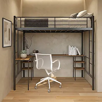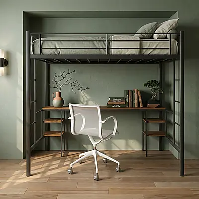 Кровать-чердак Бруклин с встроенный рабочий стол — металлическая конструкция в стиле лофт от производителя TOPLOFT. Сварная рама из профилированной стали, порошковая окраска методом электростатики, любой RAL. Освобождает до 4 м² жилой площади, рассчитана на 150 кг — подходит для взрослых. Изготавливаем под ваши размеры, отправляем в любую точку России.