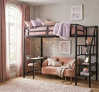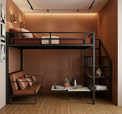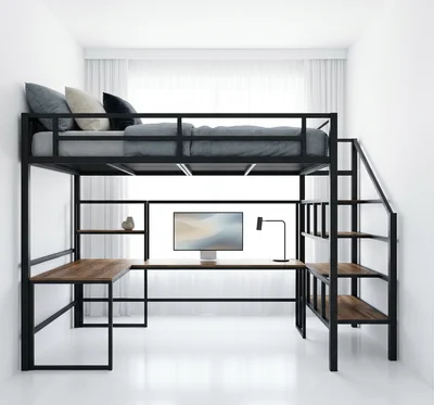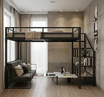 Кровать-чердак Кузня-2 — металлическая конструкция в стиле лофт от производителя TOPLOFT. Металл толщиной 2 мм, сварные швы без болтов, порошковое покрытие — любой цвет RAL. Освобождает до 4 м² жилой площади, верхний ярус выдерживает до 150 кг. Изготавливаем под ваши размеры, доставка транспортными компаниями по РФ.