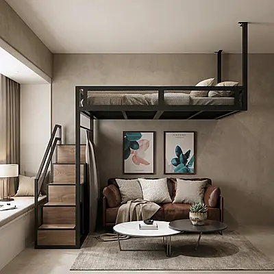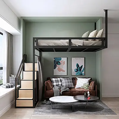 Кровать-чердак Шахта — металлическая конструкция в стиле лофт от производителя TOPLOFT. Металлический каркас из профильной трубы, порошковое покрытие — любой цвет RAL. Освобождает до 4 м² жилой площади, верхний ярус выдерживает до 150 кг. Изготавливаем под ваши размеры, доставка транспортными компаниями по РФ.