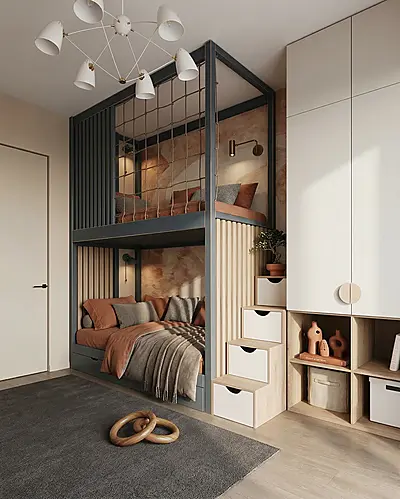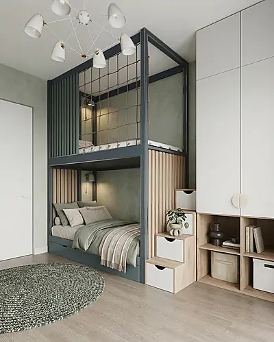 Кровать-чердак Резиденция — металлическая конструкция в стиле лофт от производителя TOPLOFT. Сварная рама из профилированной стали, термоотверждаемое порошковое покрытие, палитра RAL. Освобождает до 4 м² жилой площади, несущая способность: 150 кг на спальное место. Изготавливаем под ваши размеры, доставка по всей России.