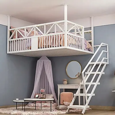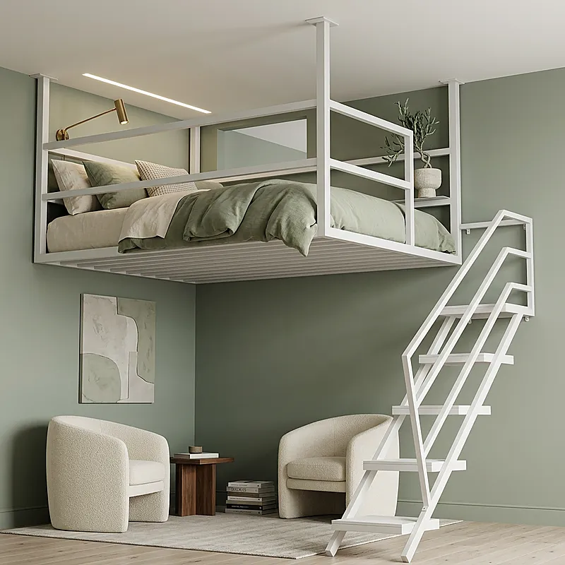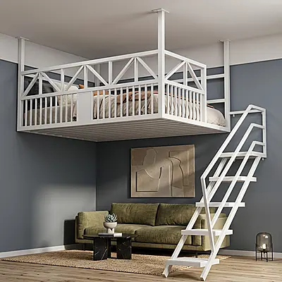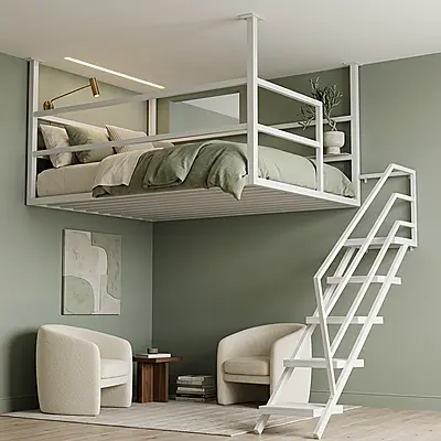 Кровать-чердак Депо-2 с подвесное крепление — металлическая конструкция в стиле лофт от производителя TOPLOFT. Сварная рама из профилированной стали, покрытие порошковой краской, 200+ оттенков на выбор. Освобождает до 4 м² жилой площади, нагрузка на верхний ярус до 150 кг. Изготавливаем под ваши размеры, доставим в любой город России.